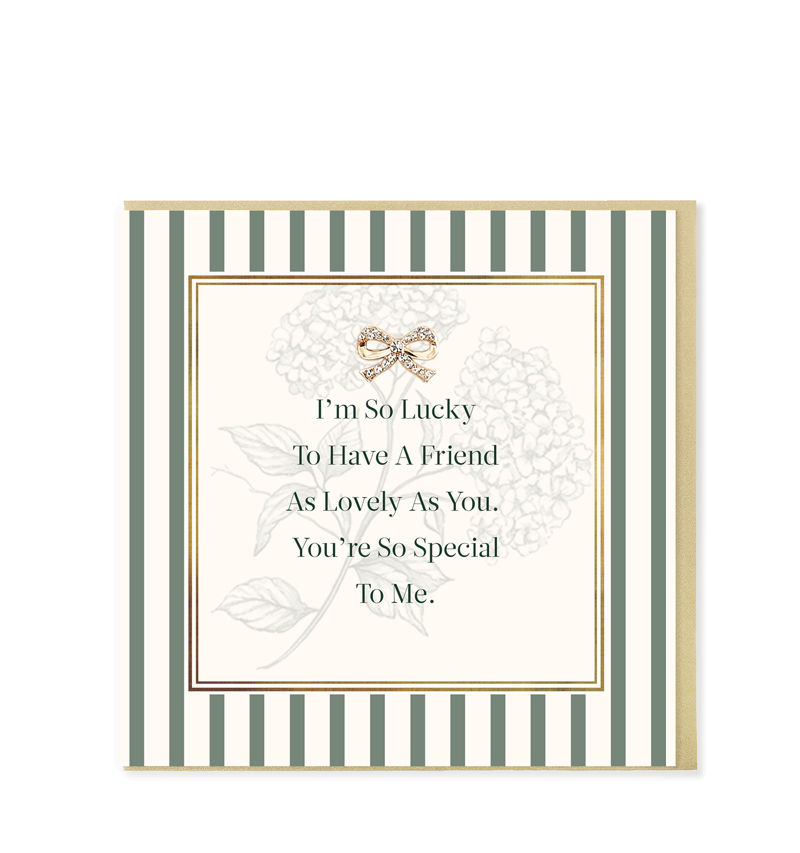 Our gorgeous luxury greetings card with Gold foil sentiment and hand embellished with a sparkling diamanté Jewel. With friend sentiment.