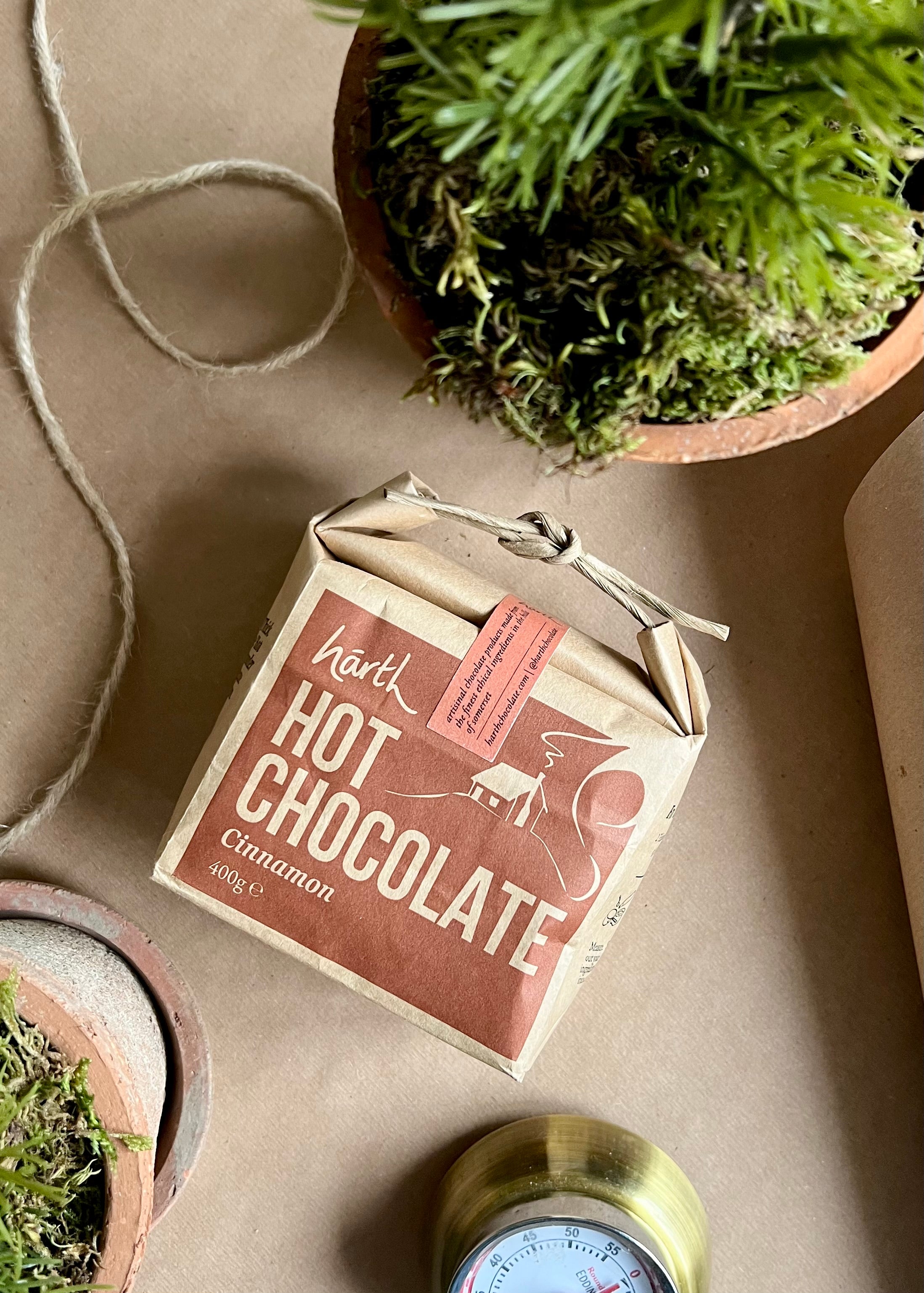 Thick and smooth Swiss style hot chocolate made with organic, unalkalised cocoa powder with hint of spicy cinnamon. Naturally vegan and works well with a variety of milks or milk substitutes. All of our packaging is plastic free and biodegradable.